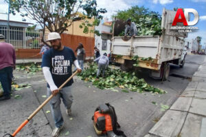 Colima, Col., 14 de noviembre de 2025.- El Ayuntamiento de Colima que preside el alcalde Riult Rivera Gutiérrez, a través de la Dirección de Parques y Jardines, continúa con las labores de poda y limpieza en los distintos camellones, jardines y áreas verdes de la capital del estado.