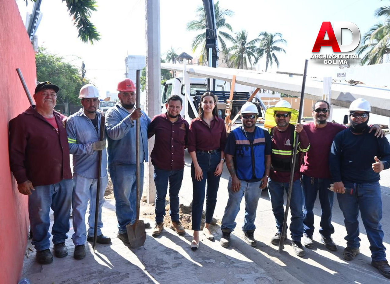 La presidenta municipal de Manzanillo, Rosa María Bayardo Cabrera, dio inicio a las obras de instalación de alumbrado público en la calle Del Mar de Las Brisas, donde por primera vez vecinas, vecinos y turistas podrán disfrutar de iluminación en su calle, para transitar con mayor comodidad y seguridad por la colonia.