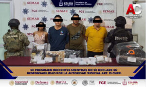 La Secretaría de Seguridad Pública (SSP) del Gobierno del Estado de Colima informa que, derivado de las acciones conjuntas de patrullajes preventivos y recorridos pie-tierra efectuados en el municipio de Colima, elementos de la Policía Estatal Preventiva (PEP), en coordinación con corporaciones federales, estatales y municipales, detuvieron a tres masculinos y una femenina por delitos contra la salud y violación a la Ley Federal de Armas de Fuego y Explosivos.