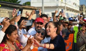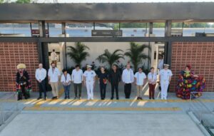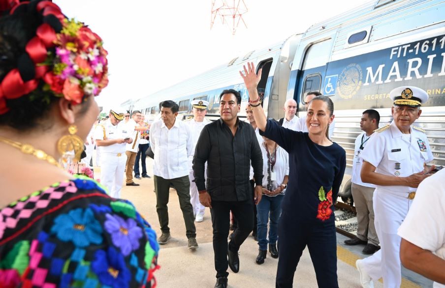Acompañada por parte de su Gabinete, así como de los gobernadores de Chiapas, Eduardo Ramírez, y de Oaxaca, Salomón Jara Cruz, la mandataria reconoció a la Secretaría de Marina por hacer posible el Tren Interoceánico.