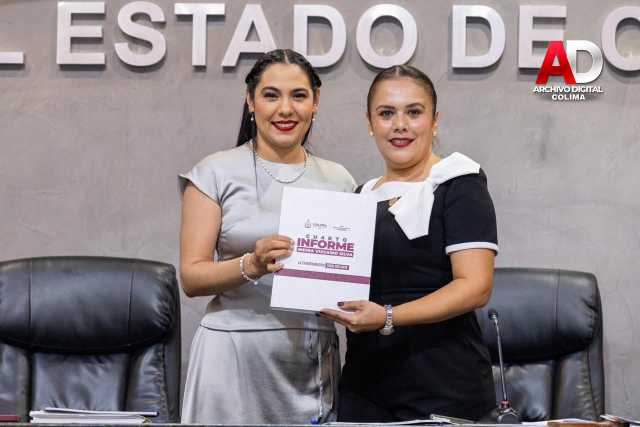 Este martes, la gobernadora Indira Vizcaíno Silva rindió su 4° Informe ante la LXI legislatura del Congreso del Estado de Colima; ahí, la mandataria, además de enumerar avances en cada rubro en cuatro años de su administración, destacó que la entidad avanza con rumbo, estabilidad, menos pobreza y con justicia social, y que tanto a nivel estatal como en toda la nación la transformación sigue adelante.