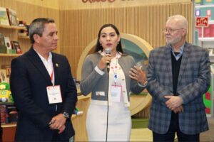 La gobernadora Indira Vizcaíno expresó su emoción por volver a la FIL en una nueva etapa de su vida y subrayó el papel de la lectura y la cultura en la transformación social: “En la medida que promovamos el acceso a la educación, a la cultura y a la lectura, estaremos contribuyendo a la formación de una sociedad mucho más justa, mucho más igualitaria, pero también empática”.