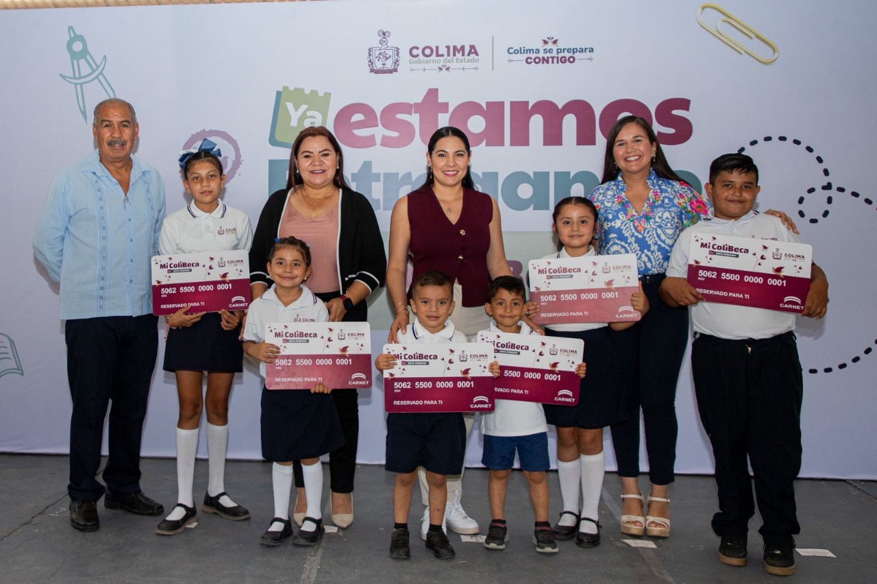 Este miércoles, la gobernadora de Colima, Indira Vizcaíno Silva, acompañada de distintas autoridades, entregó tarjetas bancarias del programa estatal Mi ColiBeca para Empezar a 373 alumnas y alumnos de preescolares y primarias públicas del municipio de Cuauhtémoc.