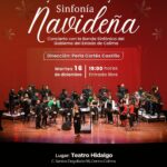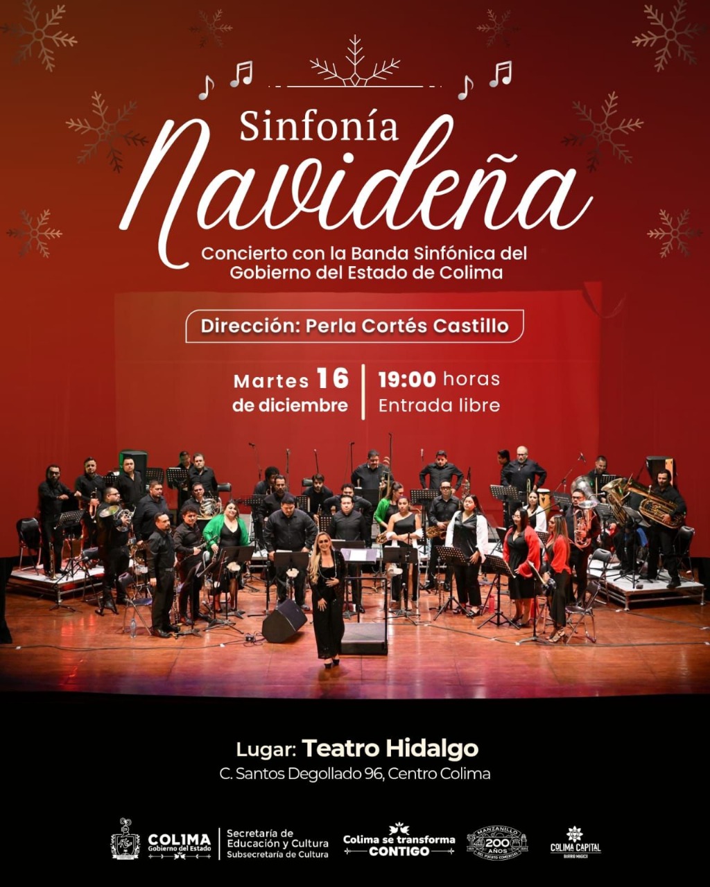 Finalmente, el martes 16, a las de 7:00 de la tarde, la Banda Sinfónica del Gobierno del Estado de Colima, dirigida por Perla Cortés Castillo, clausurará las actividades del Teatro Hidalgo en este año 2025 con la presentación musical Sinfonía Navideña, un espectáculo que contará con la participación de invitados especiales.