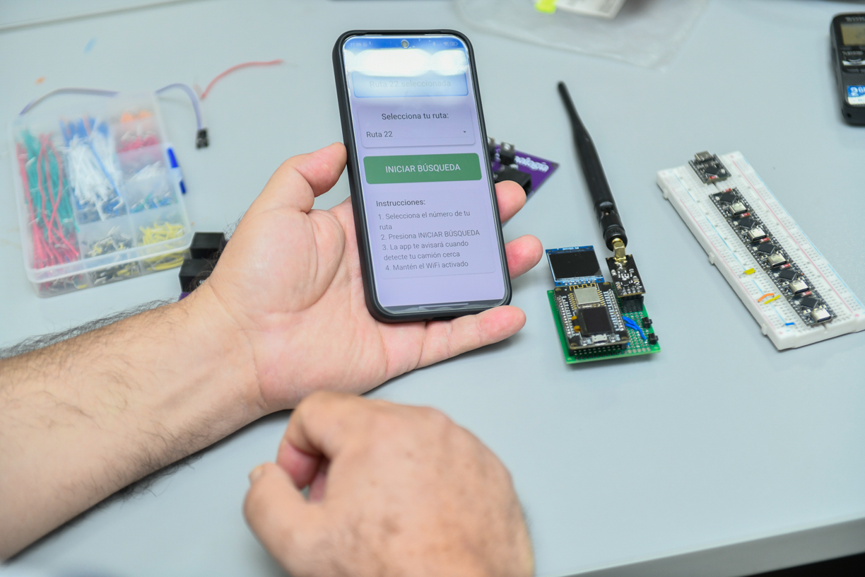 Carlos Daniel Barrera Carrillo, estudiante de Ingeniería en Sistemas Electrónicos y Telecomunicaciones, señaló que trabajan en medir el alcance de la señal Wifi, definir la distancia óptima para detectar la ruta, programar el flujo de uso de la aplicación y determinar los componentes físicos de la pequeña caja portátil que portarán las y los choferes. Este dispositivo permitirá modificar fácilmente el número de la ruta, considerando que un mismo conductor puede manejar unidades diferentes a lo largo del día.