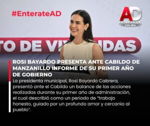 La presidenta municipal, Rosi Bayardo Cabrera, presentó ante el Cabildo un balance de las acciones realizadas durante su primer año de administración, el cual describió como un periodo de “trabajo honesto, guiado por un profundo amor y cercanía al pueblo”.