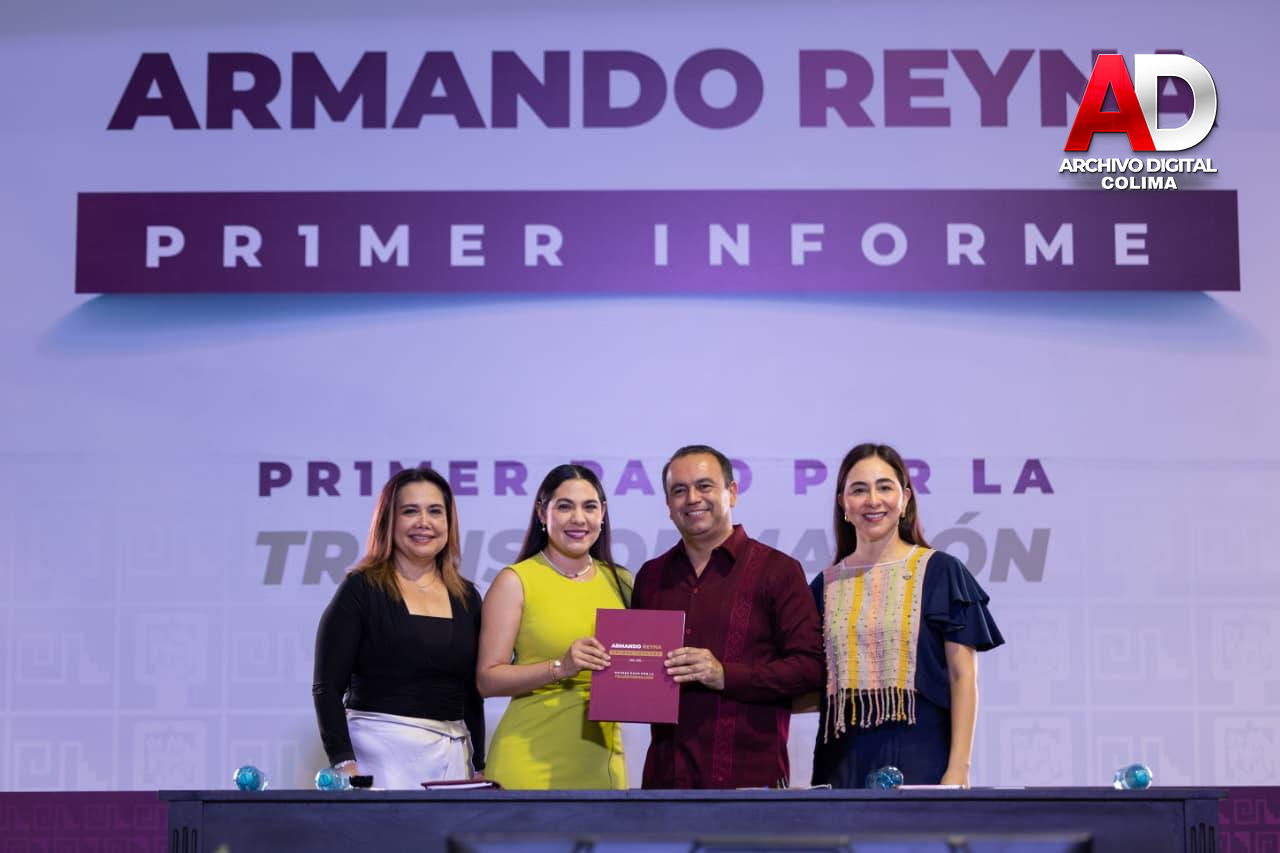 La gobernadora de Colima, Indira Vizcaíno Silva, acudió al Primer Informe de Gobierno del presidente municipal de Tecomán, Armando Reyna mañana, que se realizó este sábado por la tarde en el Parque ‘Gral. Jesús González Lugo’, donde la mandataria estatal destacó la coordinación y disposición con la que se ha trabajado con el ayuntamiento tecomense durante este tiempo.