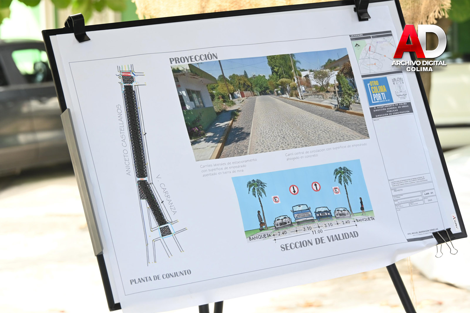 Para conservar el carácter tradicional de la localidad, se contempla el empedrado de las laterales de la calle con piedra bola de río asentada en cama de tierra.