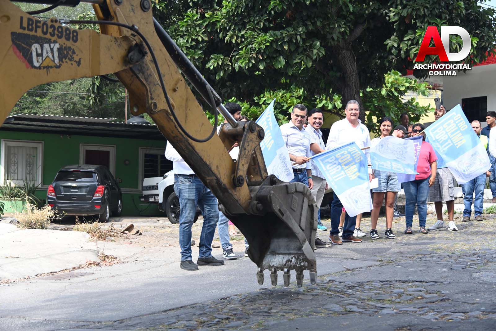 Colima, Col., 16 de diciembre de 2025.- Este martes, el presidente municipal de Colima, Riult Rivera Gutiérrez, dio el banderazo de arranque a la obra de construcción de pavimento de piedra ahogada y rehabilitación de la red de drenaje y agua potable en la calle Aniceto Castellanos, en la localidad de El Chanal, acompañado por el Comisario Municipal, Rodolfo Corona Rebolledo, funcionarios municipales y habitantes del lugar.