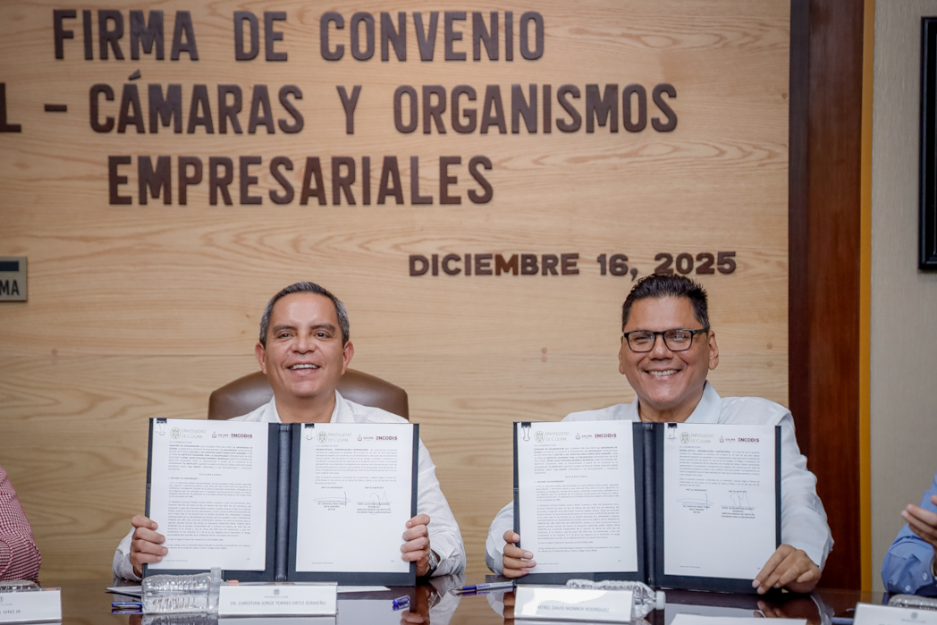 La Universidad de Colima firmó dos convenios generales de colaboración: uno con el Instituto Colimense de la Discapacidad (INCODIS) y otro con la Asociación de la Industria Electrónica y de Tecnologías de la Información del Estado de Colima (AIETIC), con el objetivo de impulsar el desarrollo social, la inclusión, la innovación tecnológica y la vinculación con sectores estratégicos del estado.