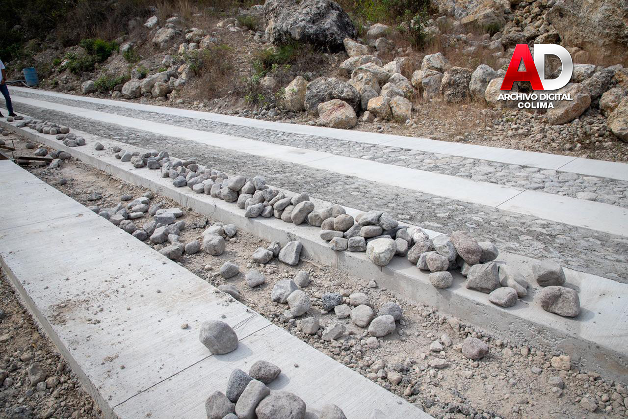 Con esta obra, en la que se invierten 16.9 millones de pesos, se construye un tramo de 2.6 kilómetros de extensión y 6.00 metros de ancho en total, con cuatro franjas de 80 cm de ancho de concreto hidráulico y 20 cm de profundidad, mientras que el resto será empedrado.
