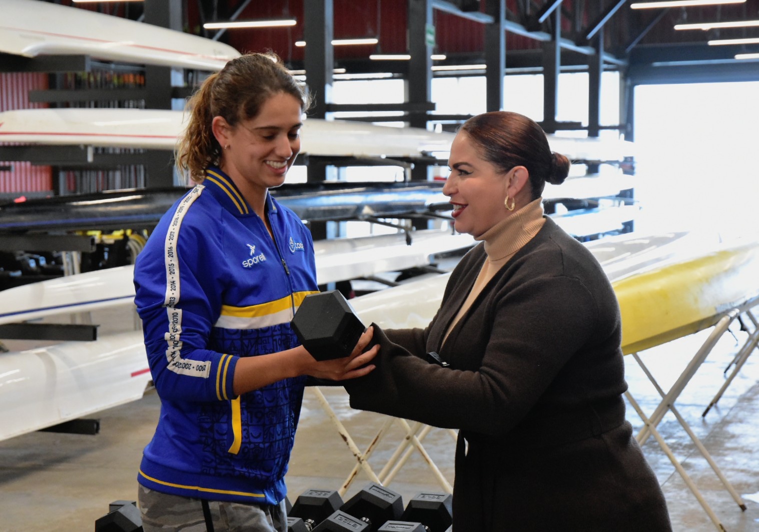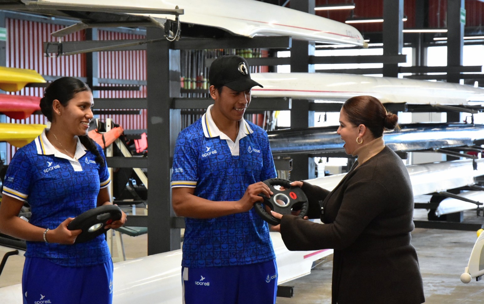CIUDAD GUZMÁN, JALISCO. 14 DE ENERO DE 2026 (CS) Por su destacada participación en la pasada Olimpiada Nacional 2025, la presidenta municipal Magali Casillas Contreras cumplió su palabra e hizo entrega de equipo de entrenamiento a deportistas zapotlenses de alto rendimiento que integran las selecciones de Remo y Canotaje, en compañía de Fernando Ortega, director del CODE Jalisco; así como de Eva María Zepeda Carrillo, jefa de Fomento Deportivo; entrenadores y padres de familia.
