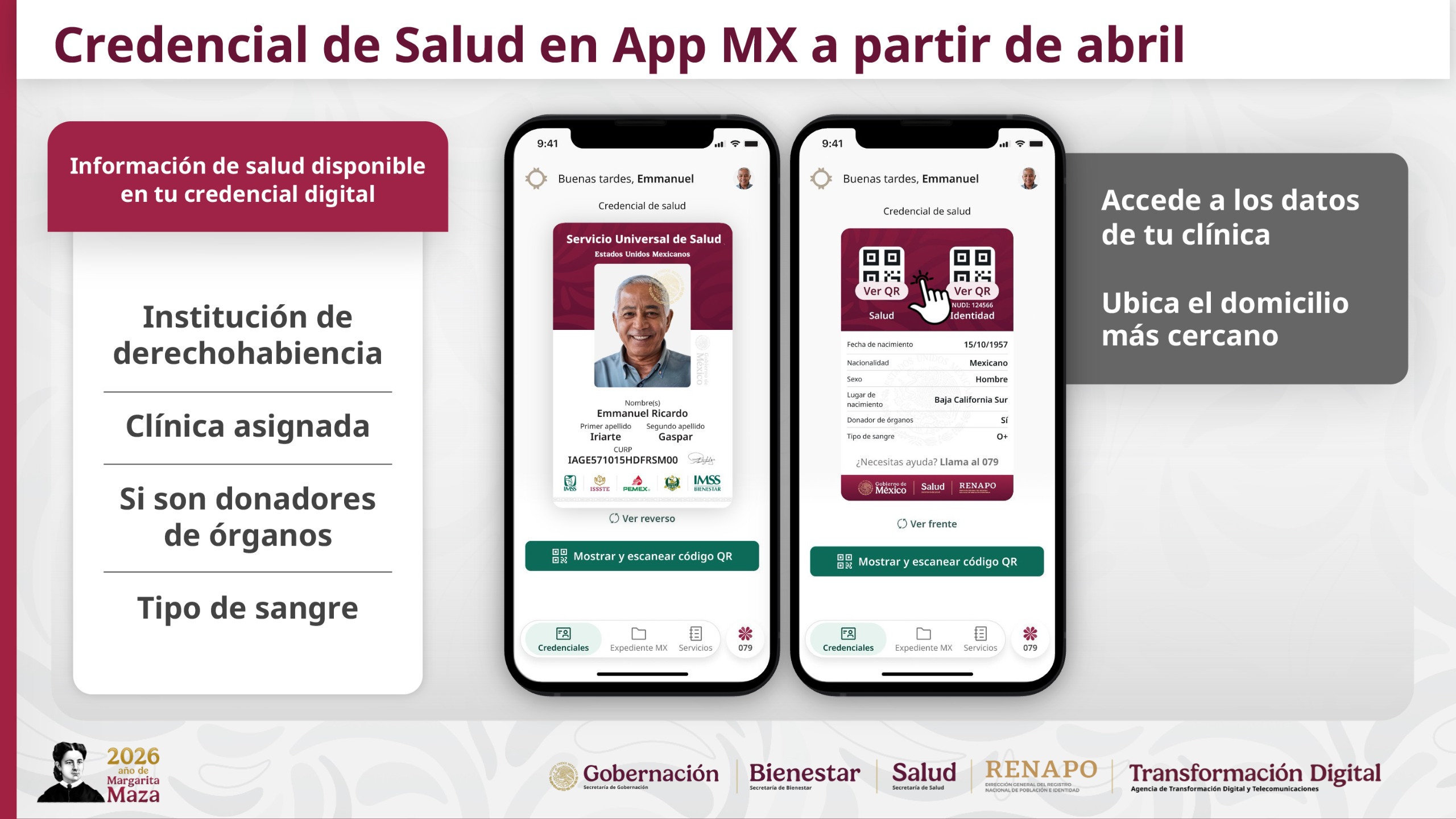Seis semanas después del registro –agregó Silva Verduzco- la persona recibirá una notificación vía SMS/llamada 079 para recoger la credencial impresa, misma que también podrá descargar en versión digital. “Algo muy importante de esta Credencial es que contará con dos QR: uno que resguarda sus datos de salud y otro sus datos personales”, puntualizó.