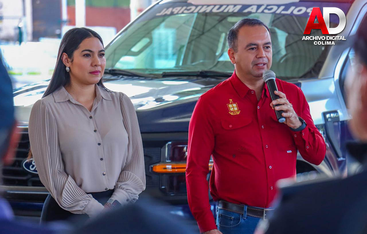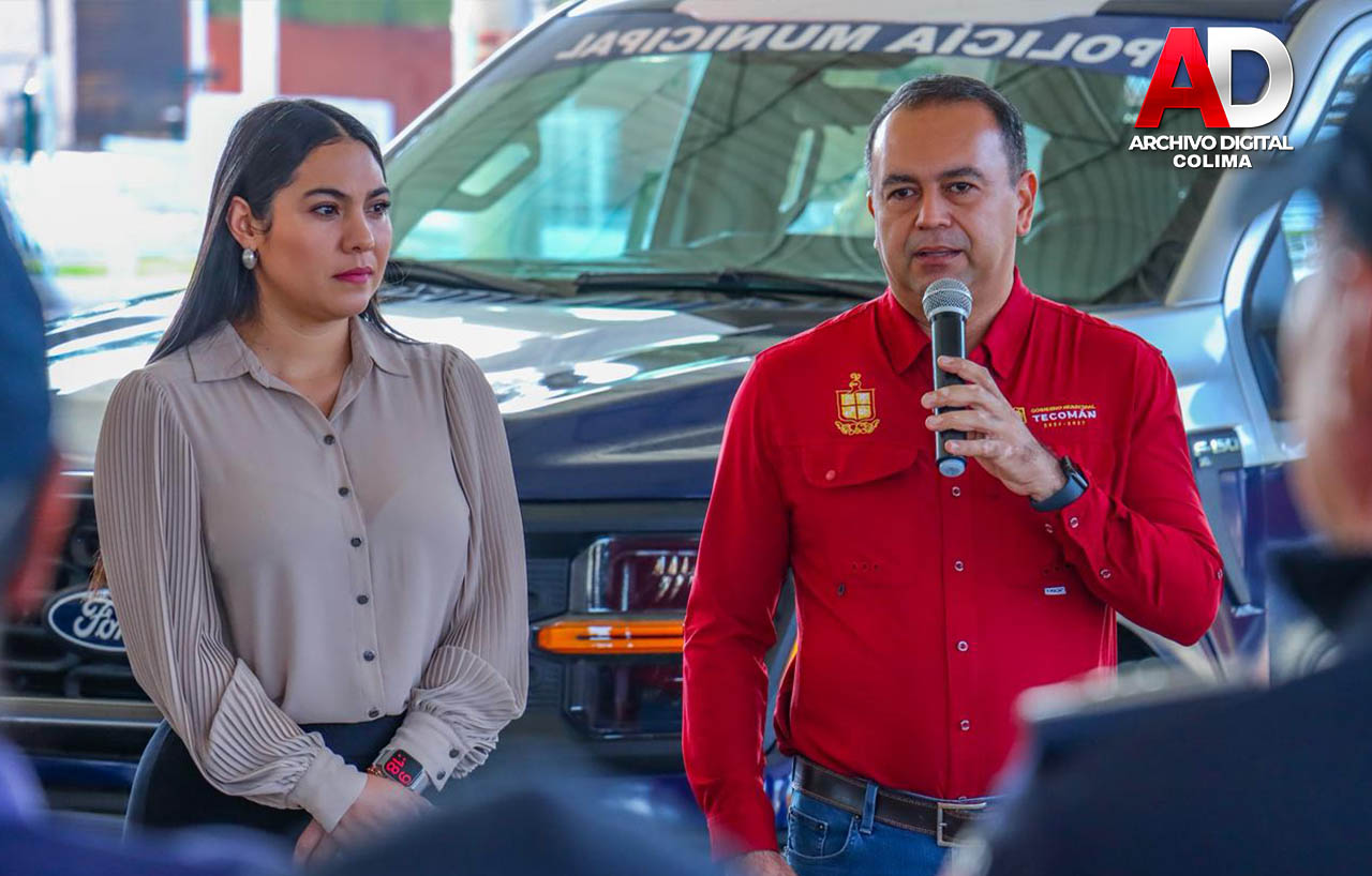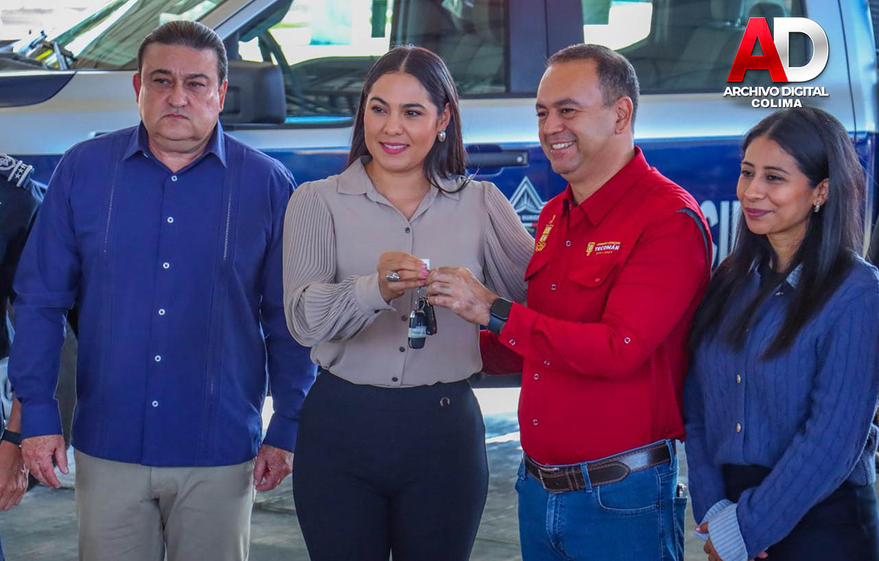 Este martes, la gobernadora del estado de Colima, Indira Vizcaíno Silva, y el presidente municipal de Tecomán, Armando Reyna Magaña, encabezaron la entrega de dos nuevas patrullas tipo pick-up, así como chalecos y cascos balísticos, botas, cinturones, insignias, uniformes y diverso equipo, a la Dirección General de Seguridad Pública y Vialidad del municipio.