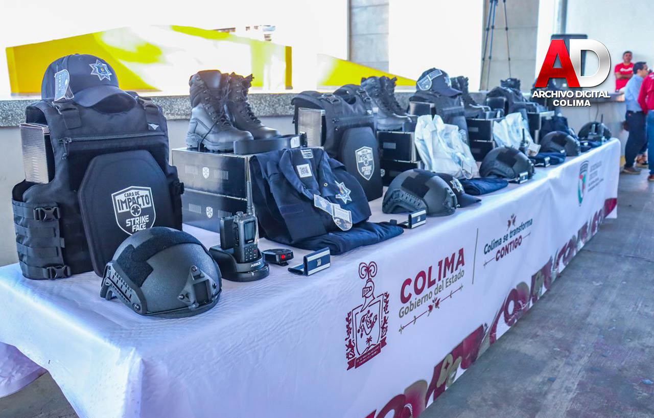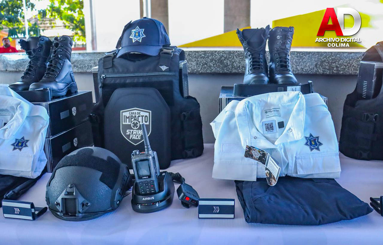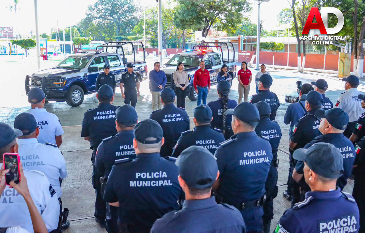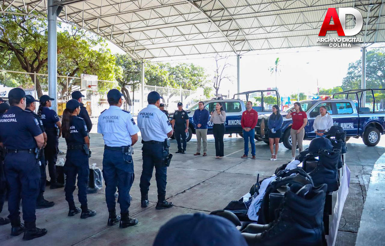 Este martes, la gobernadora del estado de Colima, Indira Vizcaíno Silva, y el presidente municipal de Tecomán, Armando Reyna Magaña, encabezaron la entrega de dos nuevas patrullas tipo pick-up, así como chalecos y cascos balísticos, botas, cinturones, insignias, uniformes y diverso equipo, a la Dirección General de Seguridad Pública y Vialidad del municipio.