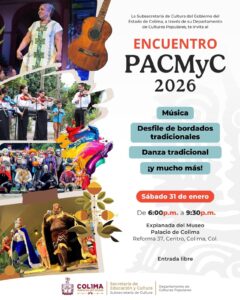 La Subsecretaría de Cultura del Gobierno del Estado de Colima, a través del Departamento de Culturas Populares, realizará el Primer Encuentro PACMyC 2026, en el que participarán las y los maestros artesanos, portadores de la tradición y artistas colimenses que han sido beneficiarios del Programa de Apoyos a las Culturas Municipales y Comunitarias a lo largo de las últimas emisiones de este programa federal, que impulsa la Secretaría de Cultura del Gobierno de México a través de la Unidad de Culturas Vivas, Patrimonio Inmaterial e Interculturalidad.