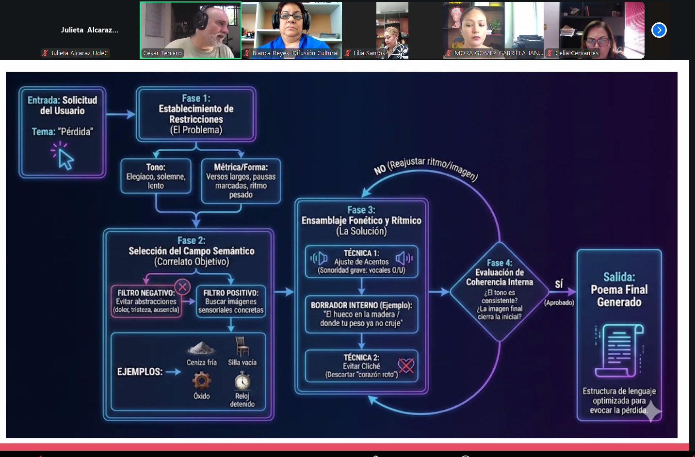 César Augusto Terrero Escalante, doctor en física por el CINVESTAV, aseguró que para que un texto trascienda “la horizontalidad del lenguaje común”, el poeta debe operar como “un ingeniero de la sensibilidad”. Su labor consiste, dijo, “en identificar y resolver problemas de diseño estético, transformando emociones ordinarias en una estructura de tensiones sonoras y visuales deliberadamente construidas”.