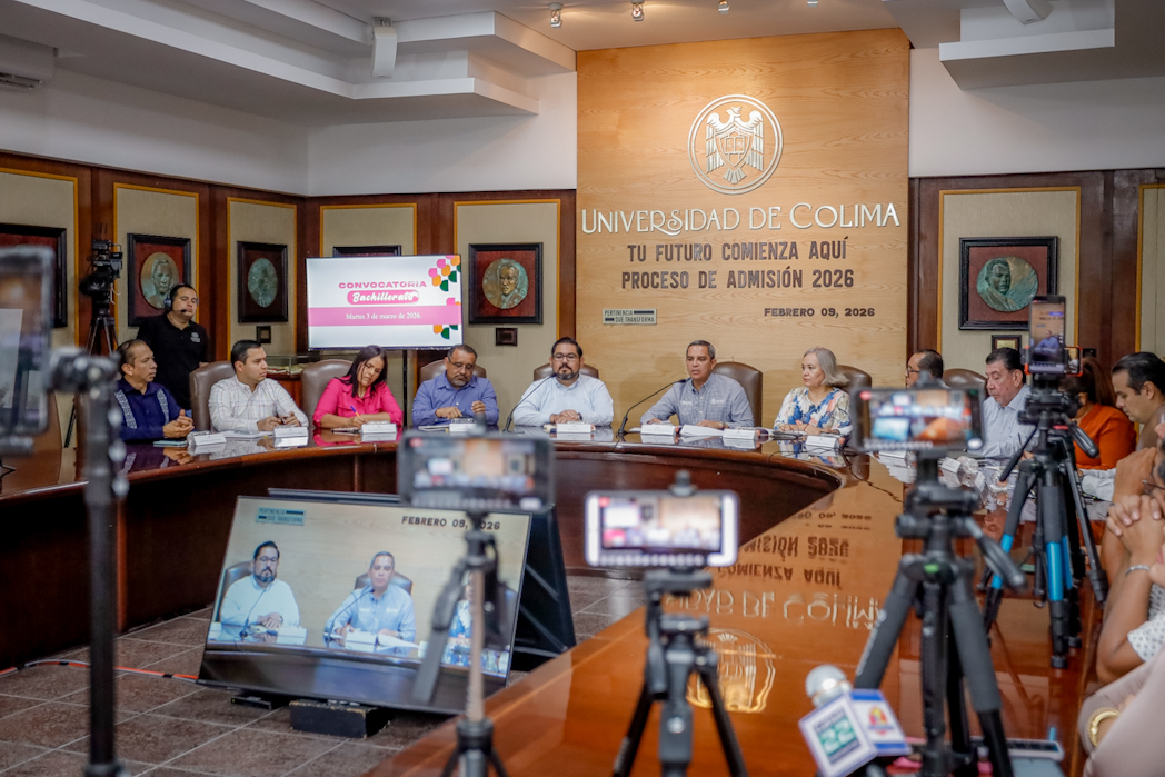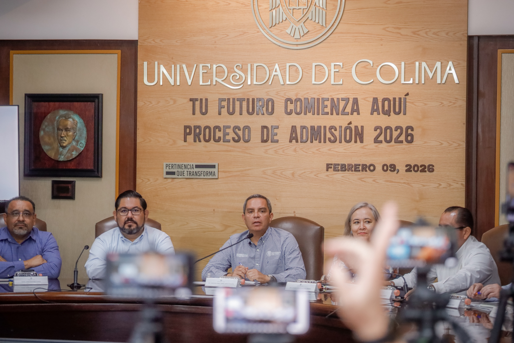 Este lunes, en el edificio de rectoría, se llevó a cabo una rueda de prensa encabezada por el rector Christian Jorge Torres Ortiz Zermeño, para dar a conocer los pormenores del proceso de admisión 2026 a la Universidad de Colima. Durante el evento, el rector destacó temas de cobertura, reestructuración y creación de nuevos programas educativos, aranceles, y la construcción de nueva infraestructura. También dio a conocer las convocatorias a la licenciatura y el posgrado.