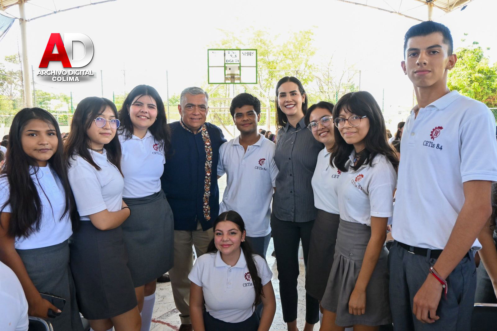 La presidenta municipal de Manzanillo, Rosa María Bayardo Cabrera, encabezó la inauguración del semestre febrero–julio 2027 del CETIS 84, donde reconoció la formación que brindan los CETIS y CBTIS, al preparar a técnicas y técnicos con visión de futuro y compromiso social.