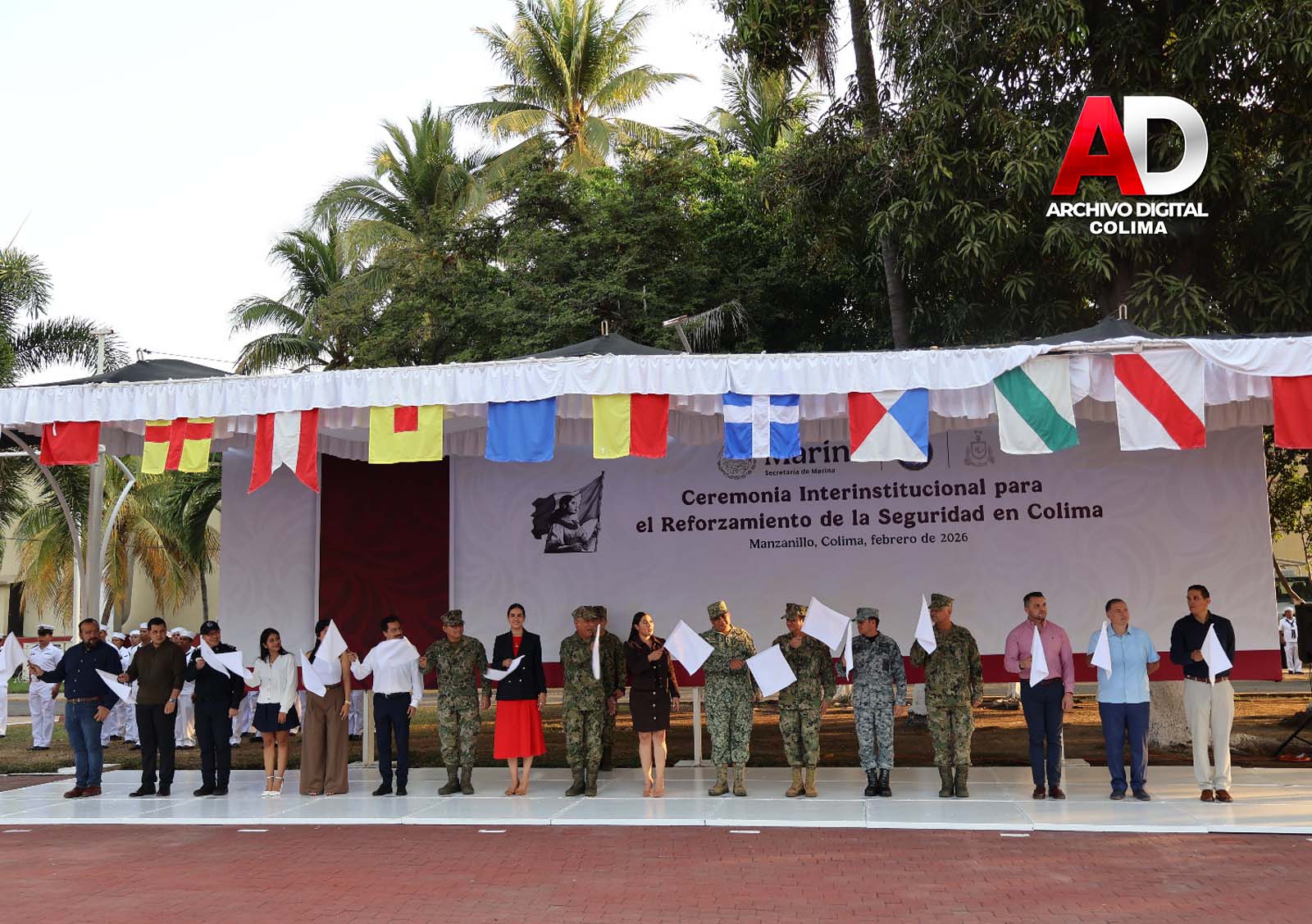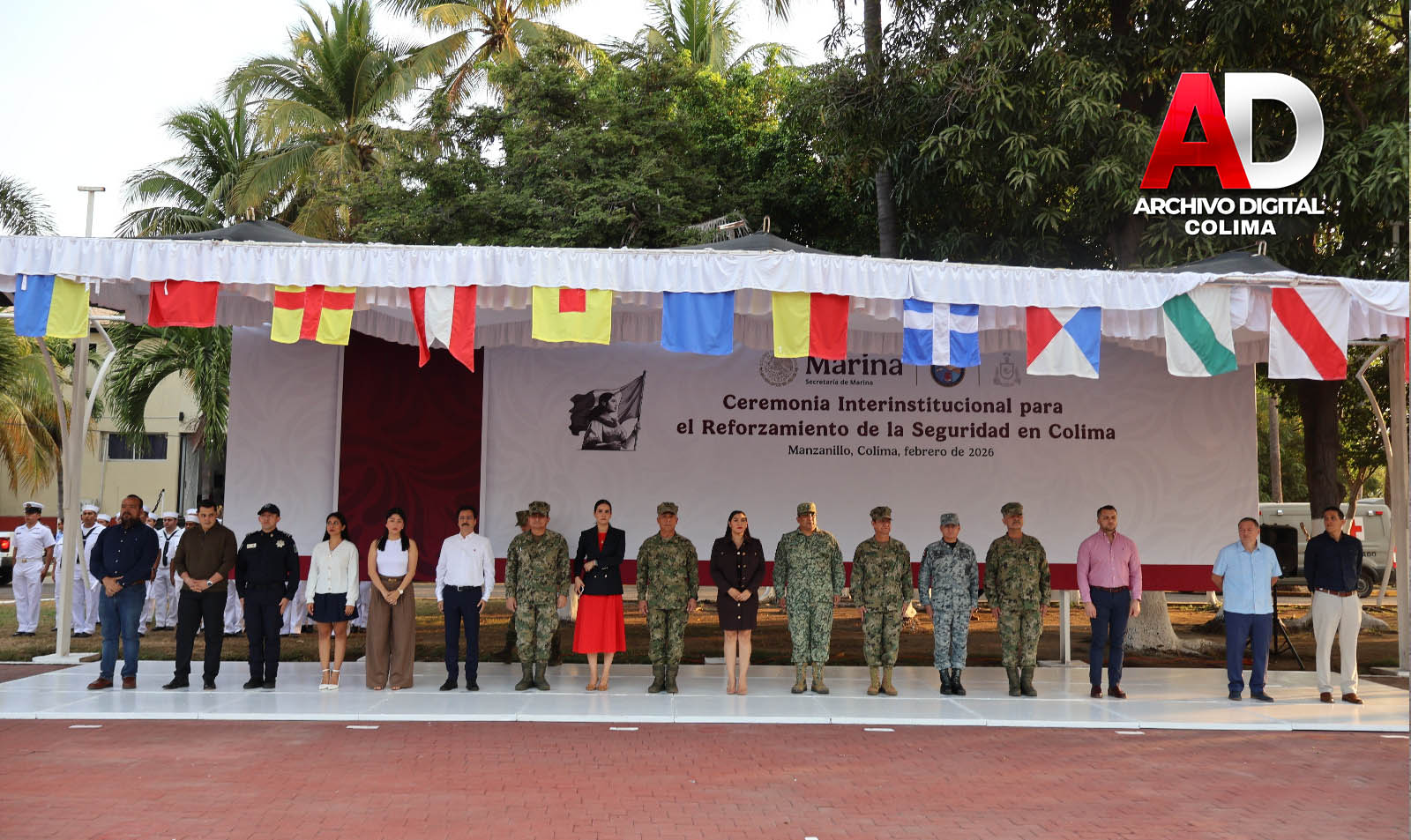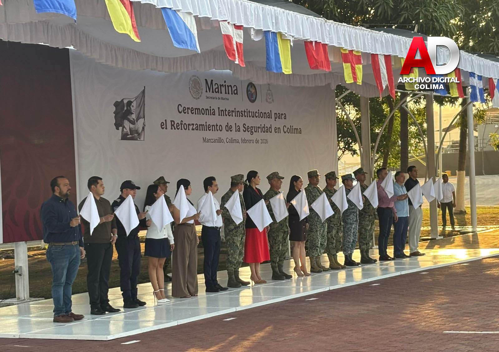 Manzanillo, Col.- La Secretaría de Marina, a través de la Armada de México, por conducto de la Sexta Región Naval, informa que esta mañana se llevó a cabo la “Ceremonia Interinstitucional para el reforzamiento de la seguridad en Colima” en las instalaciones de la Sexta Región Naval.