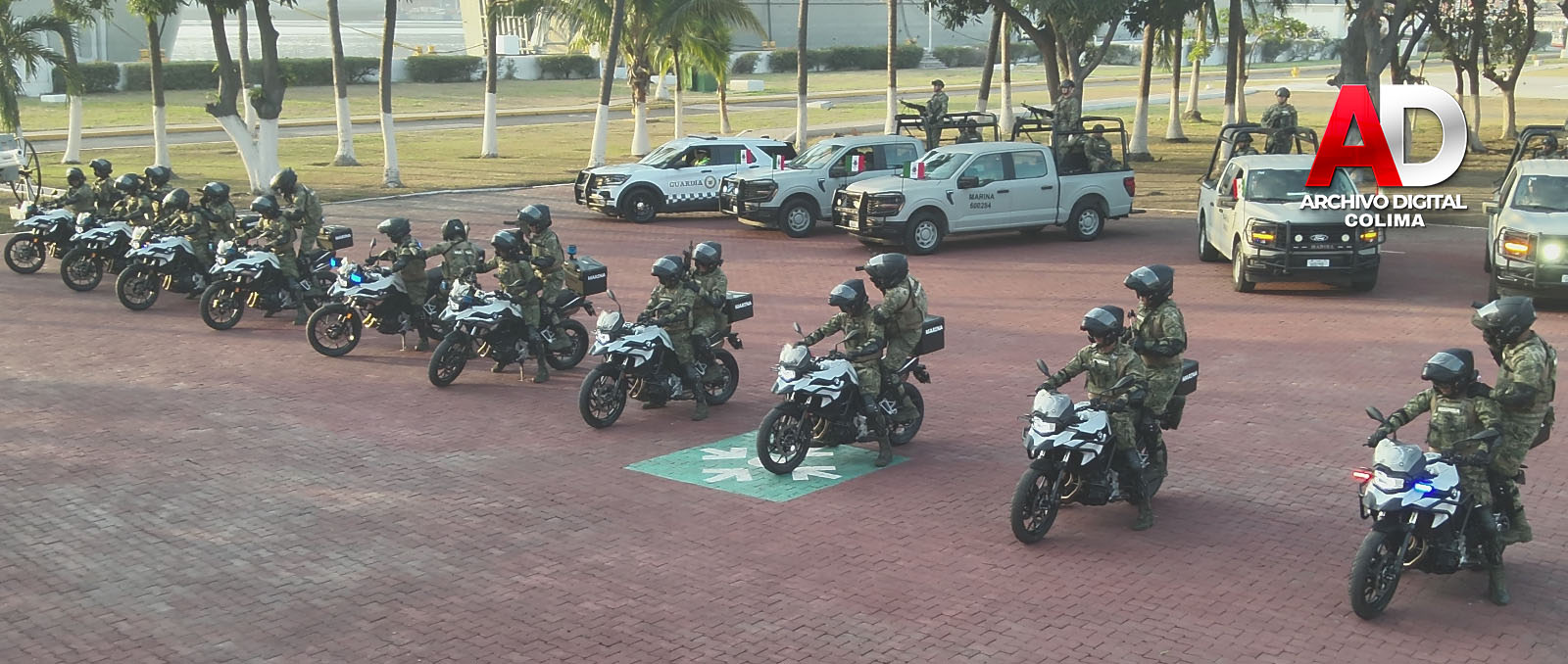 El evento fue presidido por la Gobernadora Constitucional del Estado de Colima, Maestra Indira Vizcaíno Silva, así como por el Comandante de la Sexta Región Naval, Almirante Jesús López Vallejo, quienes estuvieron acompañados por autoridades navales, militares y civiles de los tres órdenes de gobierno, mismos que dieron el banderazo de inicio de operaciones a 10 motocicletas de alto rendimiento y última tecnología.