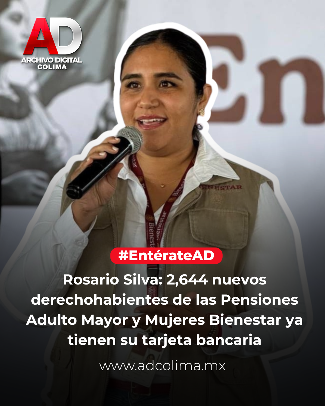 Con el operativo realizado en Tecomán, hoy concluyó la entrega de 2 mil 644 tarjetas del Banco del Bienestar a nuevos derechohabientes de la Pensión para el Bienestar de las Personas Adultas Mayores y Pensión Mujeres Bienestar de los 10 municipios, informó la delegada de los Programas para el Bienestar en la entidad, Rosario Silva Verduzco.