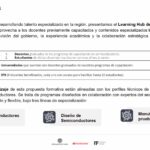 Habló también de Learning Hub en Semiconductores, una plataforma en línea del EmTech Institute (Instituto en Tecnologías Emergentes), que concentra contenidos de formación en diseño y en pruebas, ensamble y empaquetado (ATP). Dicha plataforma permite que los y las docentes repliquen el conocimiento con sus estudiantes. Como parte de esta estrategia, compartió Yadira Álvarez, a los docentes que tomaron el “Programa de Formación de Formadores” se les otorgará una beca, a ellos y también a sus estudiantes.