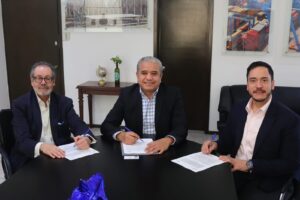 El acuerdo fue suscrito por el secretario de Desarrollo Económico, Francisco Javier Rodríguez García, asistido por el titular de la Unidad de Asuntos Jurídicos, Juan Manuel Cisneros Padilla, y por parte de UNIR-México, por el rector Francisco David Mejía Rodríguez y Rodrigo Alberto León Salazar, subdirector de Relaciones Institucionales.