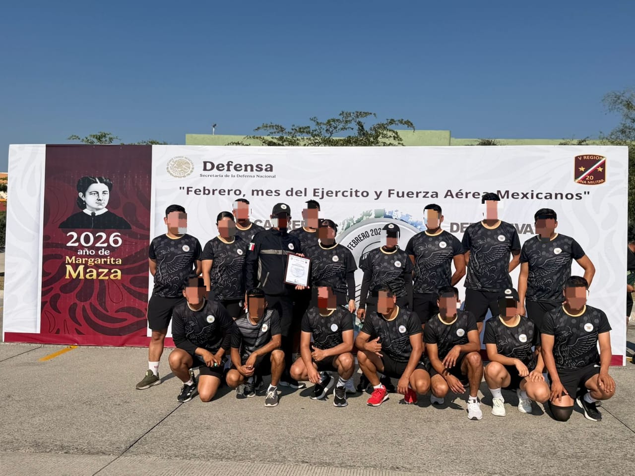 En esta jornada deportiva desarrollada en la 20/a Zona Militar, en Colima, integrantes de la #GuardiaNacional reafirma su compromiso con los valores institucionales promovidos por el Ejército Mexicano, Fuerza Aérea Mexicana y Guardia Nacional.