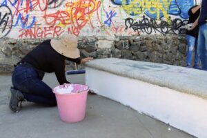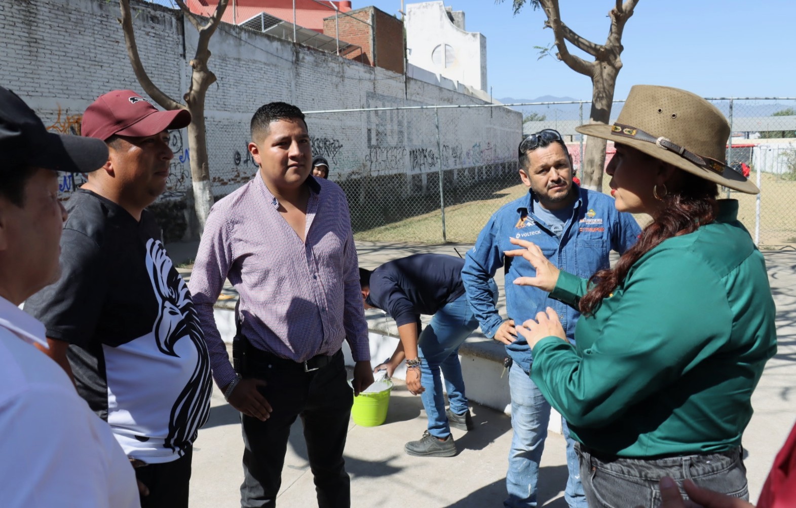 Magali Casillas Contreras agradeció al equipo de participación ciudadana por el apoyo para la rehabilitación de estos espacios quienes realizaron la pinta y limpieza de bardas que estaban pintadas con grafiti, así como el arreglo de la cancha.