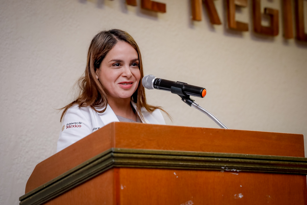 Viridiana Valencia habló de la exigente formación de las y los médicos residentes y dijo que “la medicina es una de las profesiones más nobles y exigentes; implica no solo conocimientos técnicos y científicos, sino la sensibilidad humana, ética, y un gran sentido de responsabilidad social. Ustedes han elegido dedicar su vida al cuidado de las demás personas, y con eso merecen nuestro más amplio reconocimiento”.
