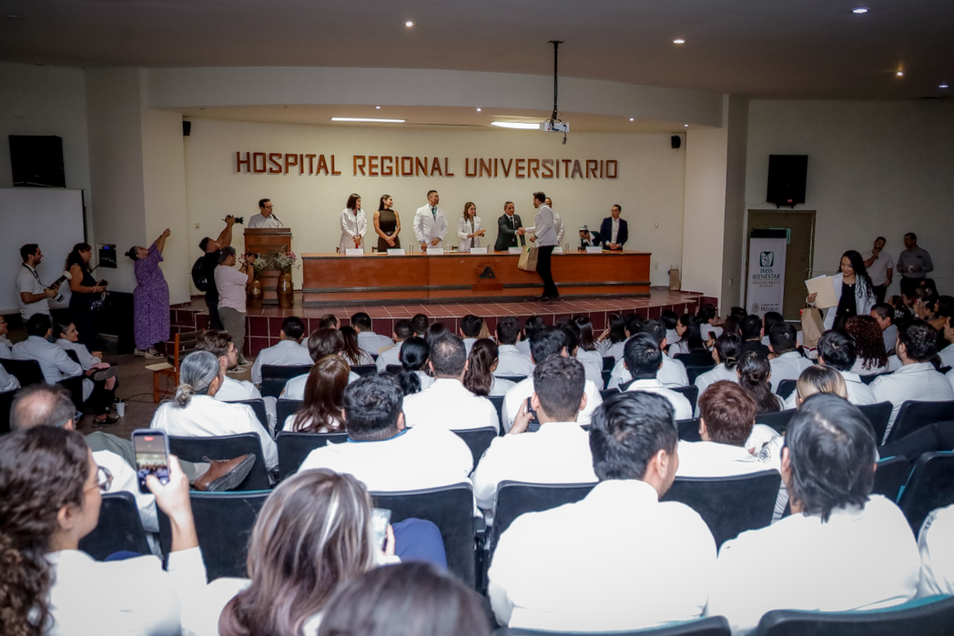 También estuvieron: Luis Ernesto Caballero Torres, coordinador federal de Educación e Investigación; Claudia Natalí Chávez Valencia, jefa del departamento de Enseñanza e Investigación y Miguel Fabián Covarrubias de la Mora, subdirector del Hospital Regional Universitario.
