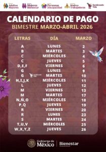 Ariadna Montiel agregó que, la fecha de pago, se puede consultar en la página oficial de la Secretaría de Bienestar: gob.mx/bienestar. Para brindar mejor atención, el depósito bancario se realiza de acuerdo con la letra del primer apellido de las y los derechohabientes y beneficiarios, bajo el siguiente calendario: