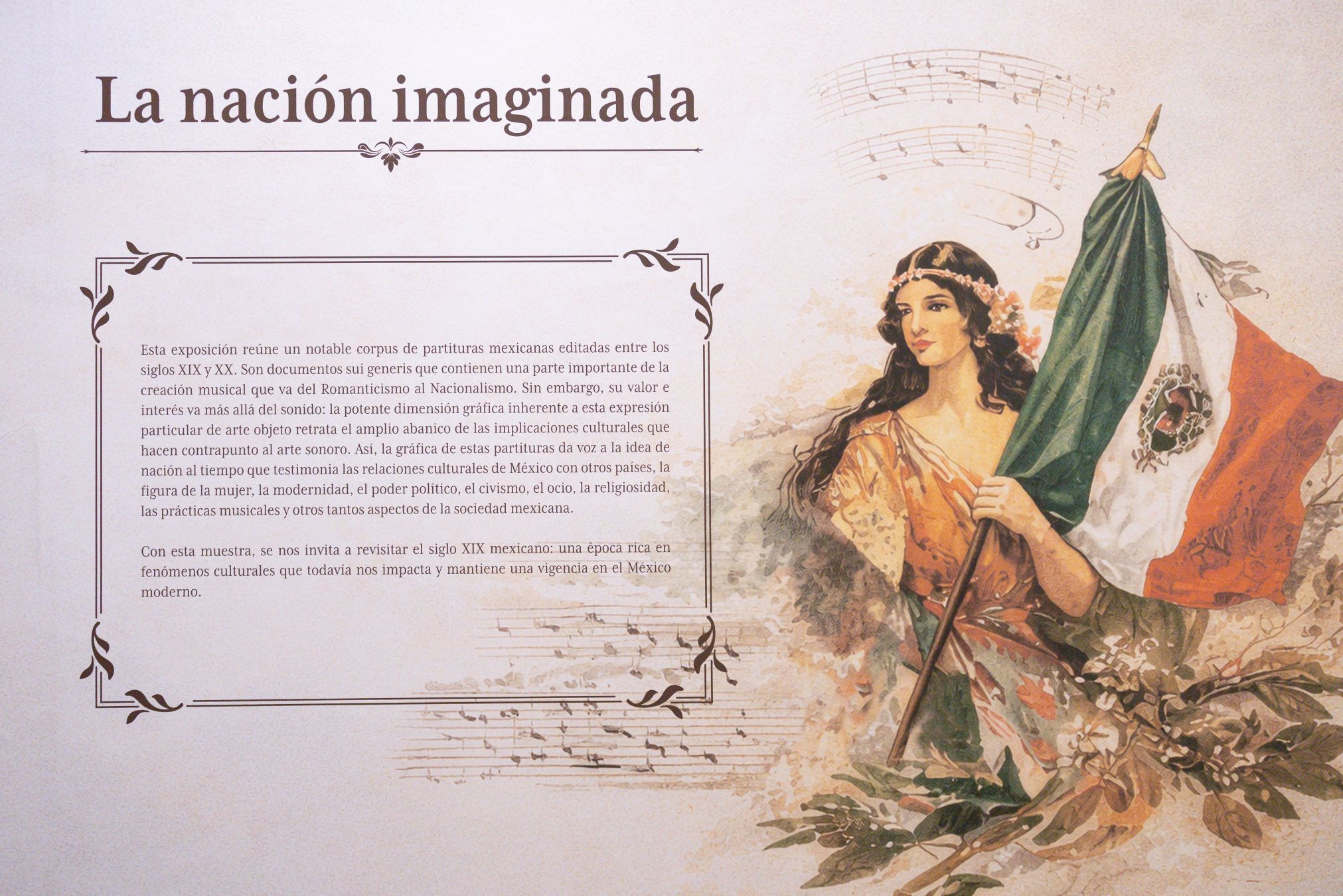 “Cuando este acervo cae en las manos talentosas y la imaginación de la Dirección General de Museos y Acervo Cultural, acompañados de la Facultad de Arquitectura y Diseño y su director Alfonso Cabrera, añadió, se logra un magnífico recorrido que evoca la música de los boleros y las baladas, entre otras expresiones artísticas y culturales que son herencia del modernismo y romanticismo mexicanos. En esta exposición veremos la iconografía que recorre el imaginario nacionalista y que tiene su origen en la popularización de esos valores a finales del siglo XIX y a principios del siglo XX”, detalló.