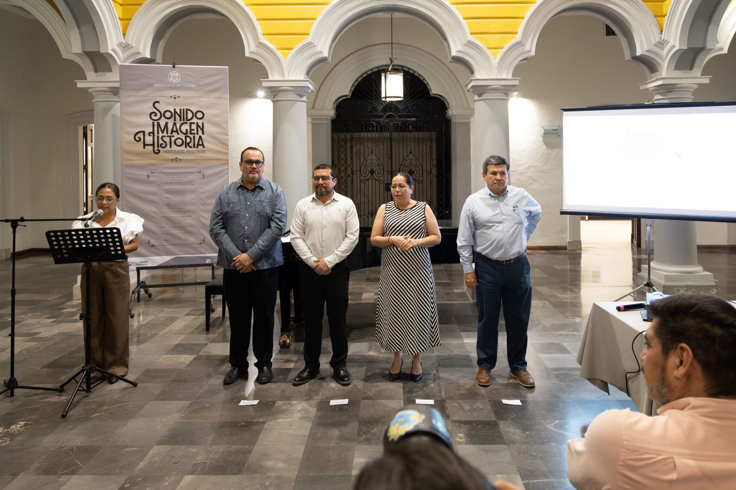 Con la participación de estudiantes, académicos, artistas, músicos y funcionarios de la Universidad de Colima, la noche de este viernes 13 de marzo se abrió al público, en la Pinacoteca Universitaria, la exposición “Sonido, Imagen, Historia. Partituras Mexicanas”. La expo es un recorrido por el imaginario musical y visual mexicano a través de paisajes, escenas costumbristas, símbolos patrios y figuras políticas que configuraron la identidad nacional durante los siglos XIX y XX.